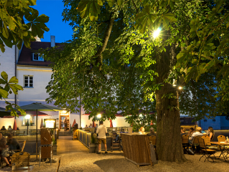 Im Biergarten sind Ihre kleinen und großen Vierbeiner herzlich willkommen.