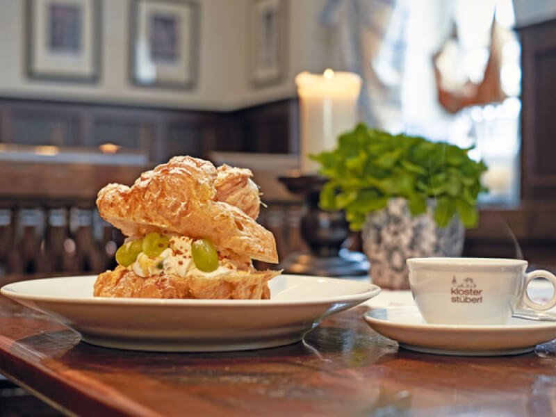 Das Klosterstüberl liegt direkt gegenüber der Klosterkirche. So brauchen Sie nur den